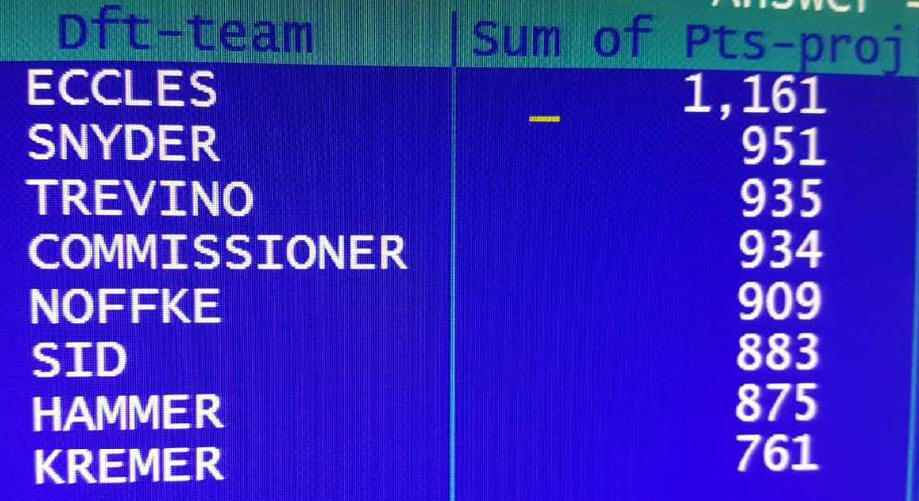The following screen shot is from Dave Eccles DOS based computer after the draft was over. This was his projected totals for the tournament by drafter. Dave took a picture and sent it to my cell phone:
