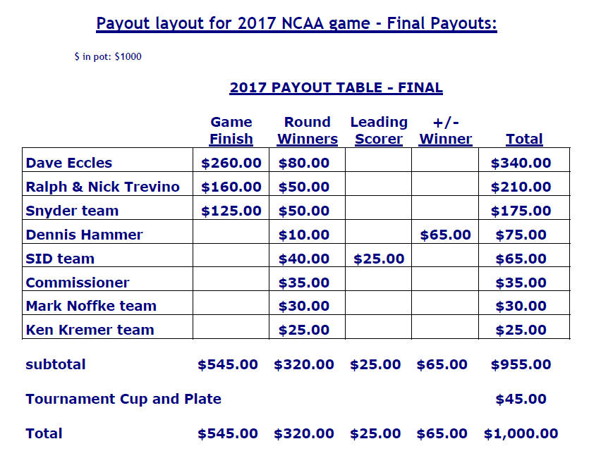 Home | 2022 Game | 2021 Game | 2020 Game | 2019 Game | 2018 Game | 2017 Game | 2016 Game | 2015 Game | 2014 Game | 2013 Game | 2012 Game | 2011 Game | Payouts | About Us | Photo Gallery | Feedback | Past Winners | Tourney History | Rules | Records