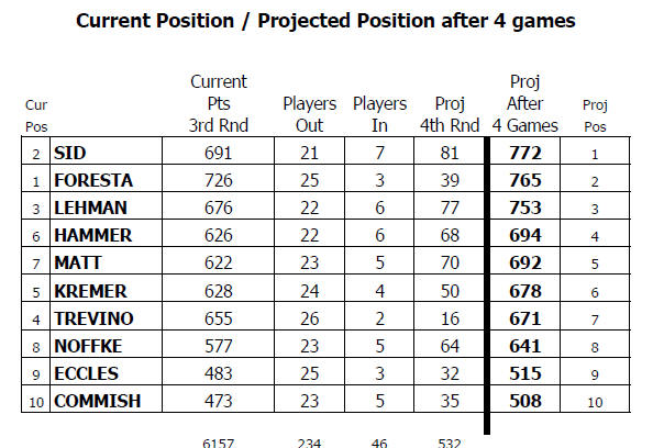 Score after 3 projection for after 4 games: |